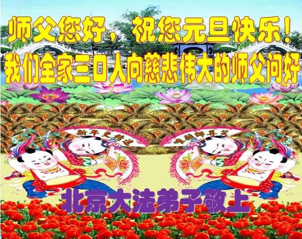 北京大法弟子恭祝师尊新年快乐! 一北京居民全家六口恭祝师尊新年快乐!
