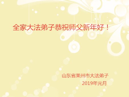 山东滨城区大法弟子恭祝师尊新年好! 山东省烟台市莱阳市全体大法弟子恭祝伟大的师尊新年快乐!