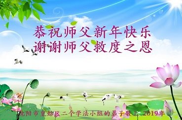 沈阳市铁西区一学法小组弟子敬上 2018年12月29日 辽宁省沈阳市铁西区一大法弟子恭祝慈悲伟大的师尊新年快乐!