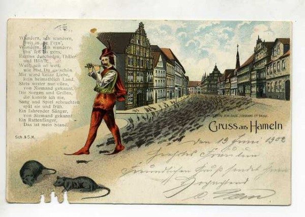 | 【明慧网二零一八年二月十一日】孔子说:“人而无信,不知其可也。大车无輗,小车无軏,其何以行之哉?”翻译成白话,大意是,一个人假使没有信用,就不知道他还有什么可以取法的了。这好比大车缺了连接车和牛的“輗”(音:泥),小车缺了连接车和马的“軏”(音:月),这样的车靠什么行路呢?” “信”是中国传统八德(孝悌忠信、礼义廉耻)之一。古往今来,君子一诺,重于千金。多少仁人志士为了一句承诺甘愿付出生命。历史上也不乏失信的教训。德国某小城六十多年来每年上演数月的舞台剧《吹笛子的彩衣捕鼠人》,就在不断提醒着人们:不守信用,后果惨痛。 哈默尔恩(Hameln)位于德国中北部童话大道上,是一座人口只有六万的小城。据该市旅游局最新统计,每年前往那里的游客接近三百九十万人次。这是一个让人吃惊的数据,因为德国最著名的新天鹅堡,每年参观人数也就一百多万。是什么吸引了这么多人前往哈默尔恩呢? 德国著名的《格林童话》中有篇《彩衣捕鼠人》,描述了一个叫哈默尔恩(Hameln)的小城发生的故事,据说是件真事。 一二八四年,哈默尔恩当地爆发了严重鼠患,城里人陷入极大恐慌。传说有一天城里来了个穿马戏团小丑彩衣的人,自称可以制服老鼠。他和城里人达成协定,谈好以一笔钱为酬劳,将老鼠引出城。人们答应他的条件后,彩衣人马上掏出笛子沿着大街小巷吹奏了起来,城里的老鼠们闻声而至。当彩衣人觉得全城的老鼠都跑出来了之后,就吹着笛子将它们引到城外河里淹死了。  捕鼠人(维基网) |