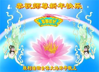 胜利油田大法弟子恭祝慈悲伟大的师尊新年快乐!