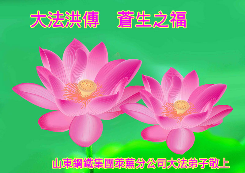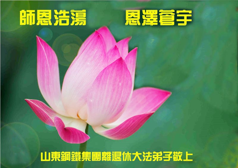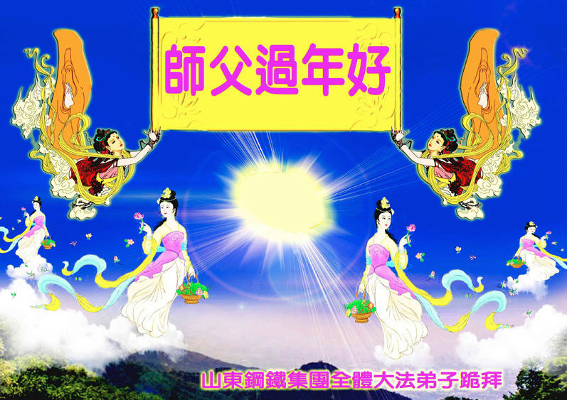 弟子与师尊虽然远隔重洋,但是弟子感觉师尊就在弟子身边,时时看护着弟子,为了弟子能够回归生命的本源,师尊付出了无数的心血!师尊的佛恩浩荡,弟子无以为报,唯有谨遵师命,与同修们互相配合,共同提高,做好三件事,圆满的随师父回归天国!弟子跪拜师尊!合十 山东钢铁集团全体大法弟子恭祝师尊新年快乐!
