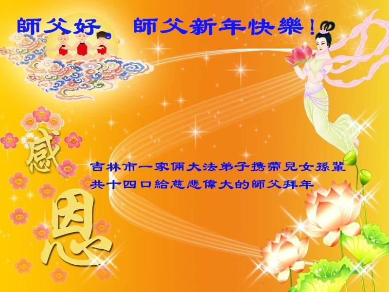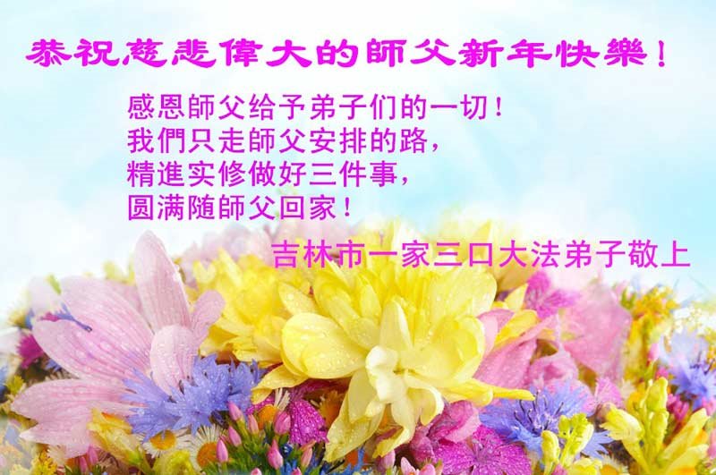 吉林市大法弟子恭祝慈悲伟大的师尊过年好!师父辛苦了! 吉林市大法弟子一家恭祝师父新年快乐!