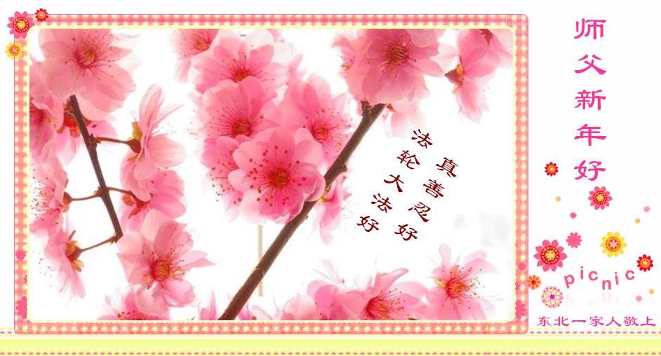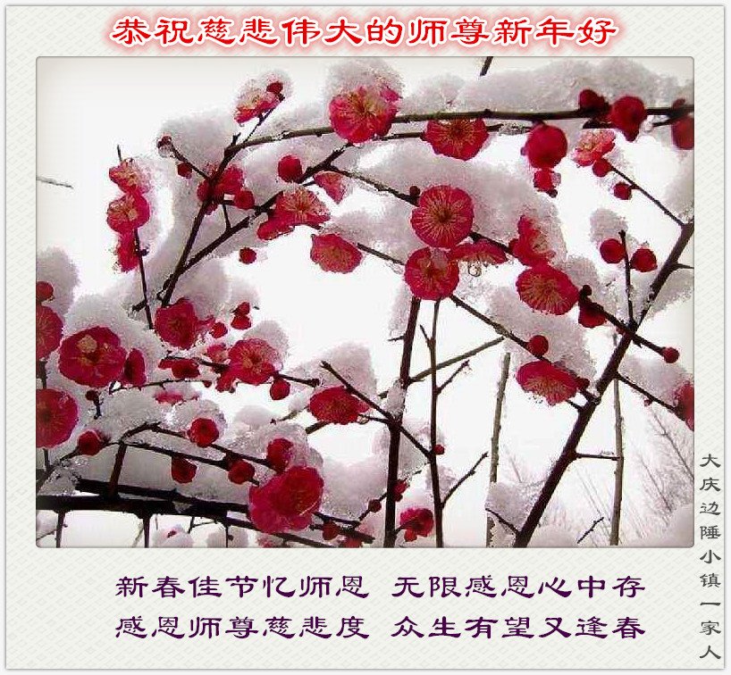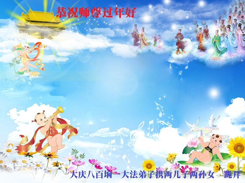 黑龙江大庆市乘二村一大法弟子全家恭祝慈悲伟大的师尊新年快乐!