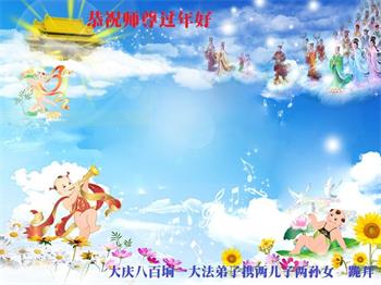 师尊您好!师尊您辛苦了!请师尊放心,我们一定按师尊要求:修好自己,做好三件事,跟师尊回家! 黑龙江省大庆乘风大法弟子恭祝师尊新年快乐!