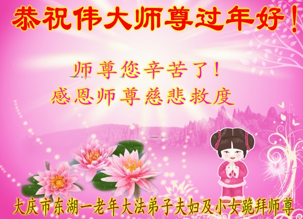恭祝师尊新年快乐! 大庆乘风大法弟子敬上 黑龙江省大庆大法弟子恭祝师父过年好!
