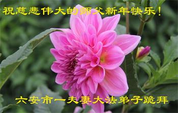 我们是安徽省六安市一对夫妻大法弟子,我们夫妻及家人感谢师父的慈悲救度。大法造福了中国、也造福了全世界。佛恩浩荡,天地回春,四海同向,普天同庆的那一刻即将到来! 安徽六安市一老年大法弟子敬祝师父新年快乐!