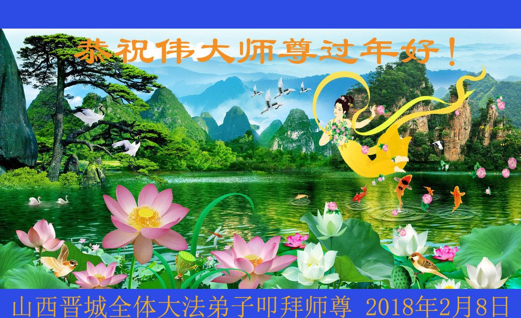 金鸡报捷辞旧岁,玉犬呈祥迎春来。在新的一年里弟子一定要更加做好三件事,更加勇猛精進,学好法,多救人,兑现誓约,随师回家。 山西省晋城市一大法弟子合十叩拜! 全体山西大同大法弟子恭祝师父过年好!