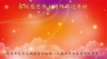 在新的一年里,我们阳泉的大法弟子们会紧跟正法進程,学好法,多救人。 山西阳泉市平定县巨城镇赵家峪一大法弟子及全家恭祝师尊过年好!