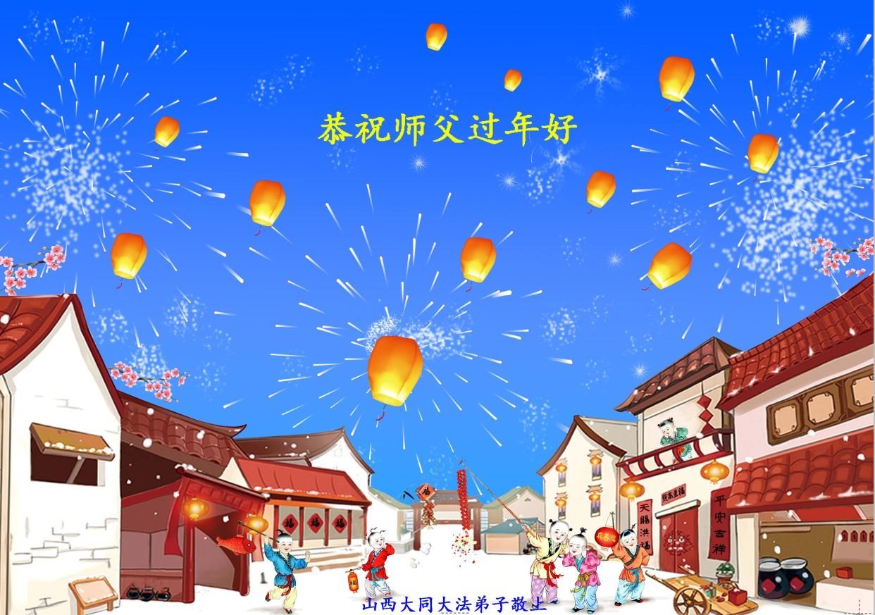 山西大同大法弟子敬献合十! 恭祝师尊新年好! 山西晋城全体大法弟子恭祝师父过年好!