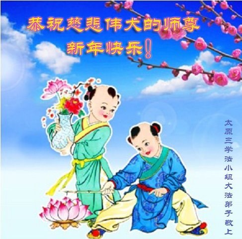 山西大同一大法弟子全家恭祝师父过年好!牢记师父的话实修自己,救度众生。 山西省太原三学法小组大法弟子恭祝慈悲伟大的师尊新年快乐!