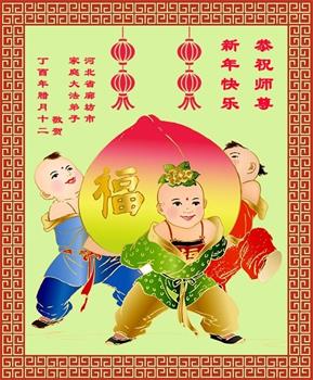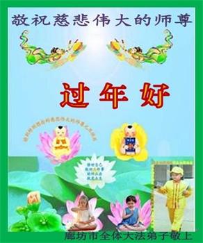 恭祝师尊新年快乐! 弟子们一定好好修,一修到底! 河北廊坊市一家四代大法弟子向师尊拜年! 河北廊坊小区一学法小组给师父拜年!