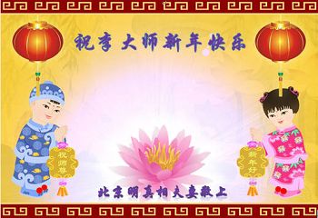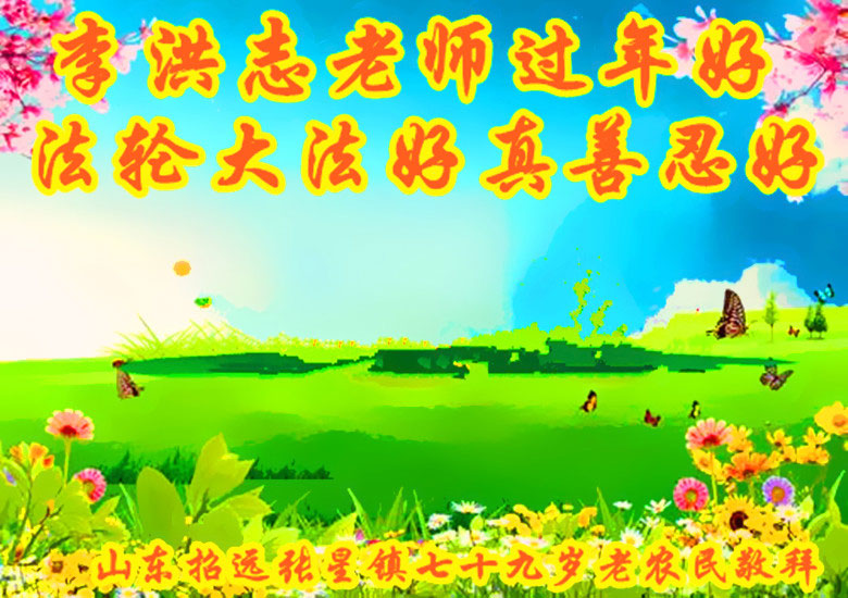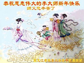 李大师:恭祝您和您的家人过年好!您为您的弟子操尽了心,所以我们致以崇敬的问候!您辛苦了、真的实在太辛苦了!作为我们大法弟子的家属真不知怎么感谢您,因为我们家有一个真诚善良、做事先为别人着想、做好人的大法弟子。是您把他、她们从地狱里救出来洗净。从此我们家有了别人都羡慕五体投地的和睦家庭。我们要向您表白的心里话太多太多了,我们没有办法报答您的洪恩,只有支持您的弟子做好三件事,多救人、多救人、多多救人,来完成我们的心愿。 吉林省柳诃县一个老兵恭祝伟大的李大师过年好!