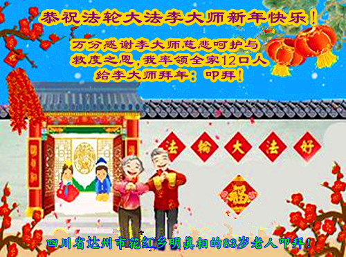 【明慧网二零一八年二月十二日】 四川省达州市花红乡明真相的83岁老人恭祝法轮大法李大师新年快乐!
