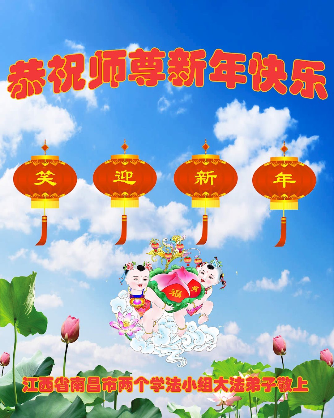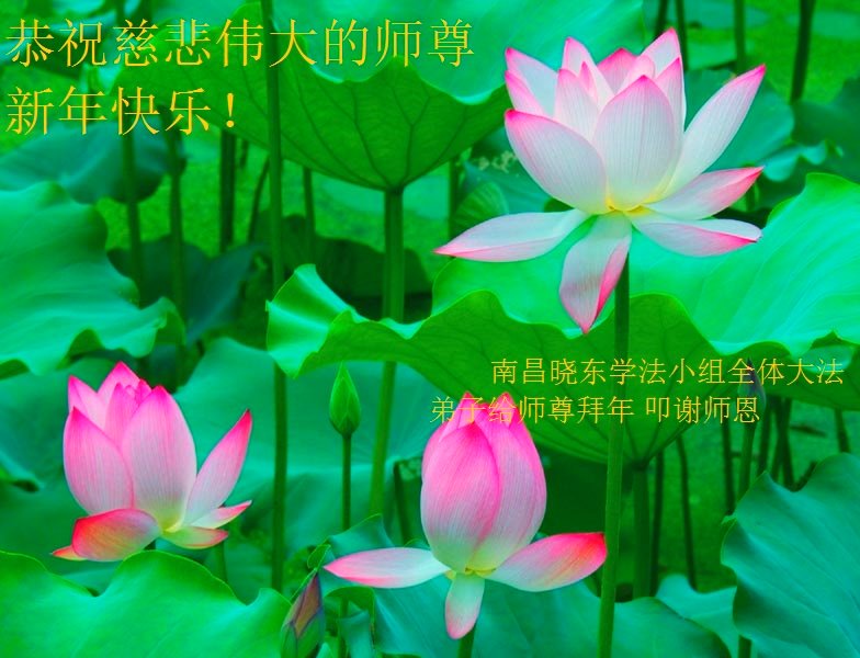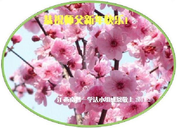 戊戌年新年到来之际,南昌市一学法小组向慈悲伟大的师尊拜年!祝师尊新年快乐!我们学法小组的全体大法弟子一定抓紧时间学好法,按法的标准要求自己,遇事向内找修好自己,多多的救人,不辜负师尊的慈悲苦度!最后叩谢师恩! 南昌市一学法小组 江西赣州地区所有大法弟子恭祝伟大师父新年快乐!