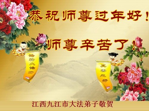 大法弟子姐姐和狱中的妹妹同修向伟大的师尊问候新年好!恭祝师尊新年快乐!大法弟子在任何环境下,都要听师父的话,以法为师,别无他想。我们姐妹俩一定兑现自己的誓约,完成神圣的使命。再次祝师尊新年快乐!感谢师尊的苦度之恩。 江西省九江市瑞昌市全体大法弟子恭祝师尊新年好!