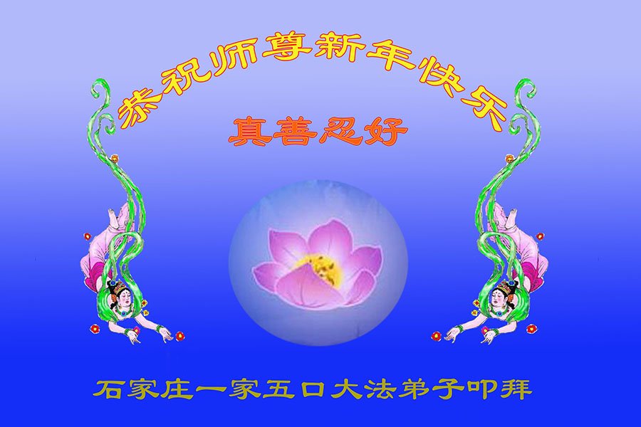 河北石家庄长安区一大法弟子与家人恭祝师尊新年快乐!
