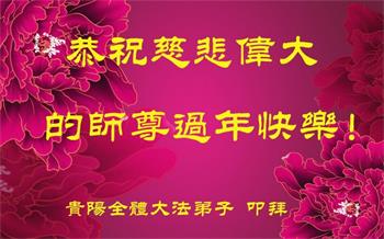 贵阳市全体大法弟子恭祝慈悲伟大的师尊过年快乐! 贵州全体大法弟子恭祝师父新年快乐!