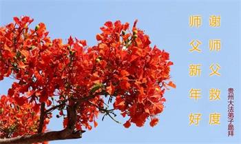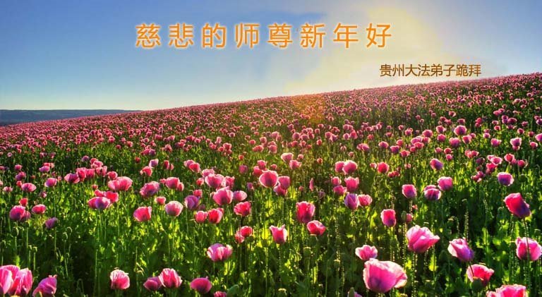 恭祝慈悲伟大的恩师新年快乐! 感恩师尊苦度!我们一定听师尊的话,做好三件事,修炼好自己,做合格的大法弟子。 弟子们跪拜恩师! 贵州大法弟子恭祝师尊新年好!