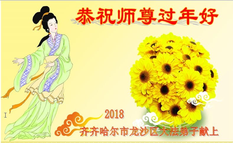 【明慧网二零一八年二月十二日】 黑龙江省齐齐哈尔市富拉尔基区大法弟子恭祝师尊过年好!