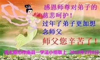 【明慧网二零一八年二月十二日】 黑龙江省佳木斯大法弟子恭祝伟大师尊新年快乐!