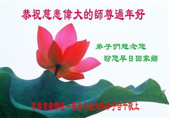 在新的一年里和同修整体配合,修去诸多人心,做好三件事,完成历史使命,不愧师尊一路慈悲呵护。叩拜师尊! 吉林市昌邑区一学法小组大法弟子恭祝师尊过年好!