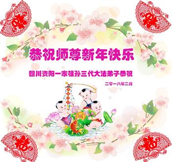 四川资阳一家祖孙三代大法弟子恭祝师尊新年快乐!