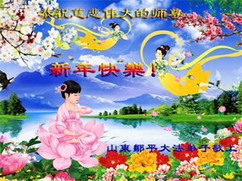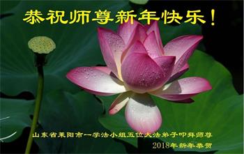 山东省莱阳市一位大法弟子恭祝慈悲伟大的师尊新年佳节快乐! 山东省烟台市莱阳市一学法小组五位大法弟子恭祝慈悲伟大的师尊新年佳节快乐!