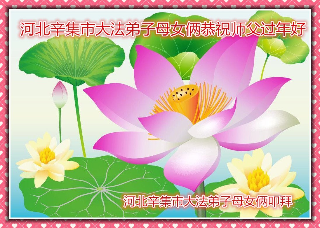 恭祝慈悲伟大的师尊过年好! 弟子们感谢师父慈悲救度,法轮大法好,弟子们一定认真学好法,听师父的话,努力多救人,一定跟师父回家! 石家庄市长安区学法小组大法弟子敬上 河北石家庄辛集市俩大法弟子恭祝师尊过年好!