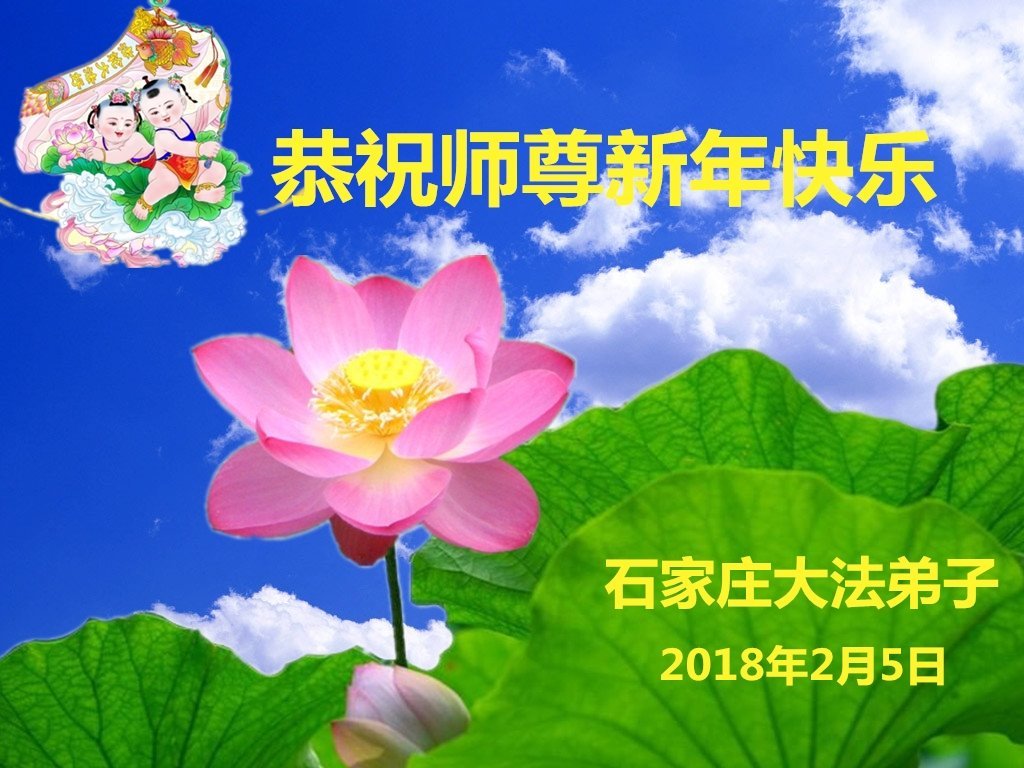 师父:您好!您辛苦了! 我们想念师父,我们盼望师父早日回来,在新的一年,一定做好三件事,救度众生。感谢师父慈悲苦度,谢谢师父。 2018年2月5日 河北省石家庄市桥西区一学法小组全体大法弟子恭祝慈悲伟大的师尊新年好!