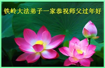 辽宁省营口市站前区一大法弟子全家给师父拜年!