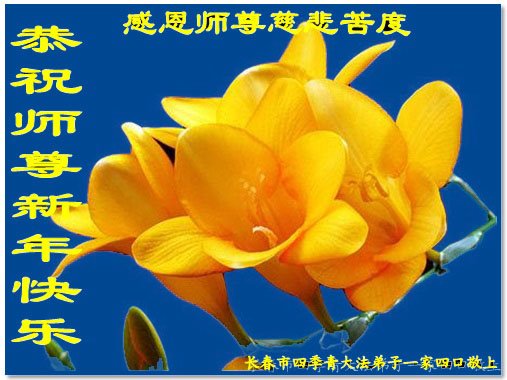 居住在吉林省长春的大法弟子及家人祝慈悲伟大的师父新年快乐!