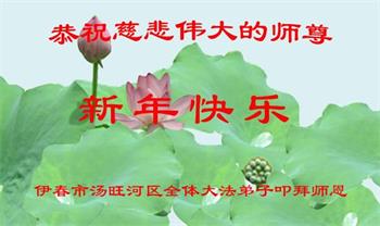 弟子跟随师父修炼多年,感悟每一次境界的升华都离不开师父的慈悲点化与呵护,一路走来浸透了师父为弟子付出的多少心血!弟子实践着为法下世的心愿,修去了多少不好的人心,向着师父要求的:无私无我,先他后我,为他的境界迈進。我的内心无比的轻松与幸福!感恩师父!我要继续努力按着师父说的做,让世人都知道法轮大法好,真、善、忍好,得到大法的救度! 黑龙江省伊春刚刚走回修炼的弟子恭祝师尊新年快乐!