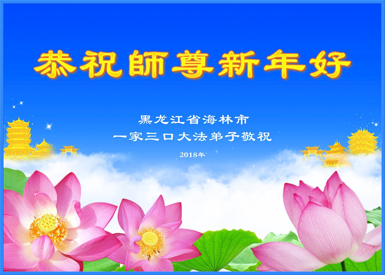 黑龙江省牡丹江市海林市一家三口大法弟子恭祝师父新年快乐!