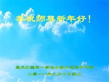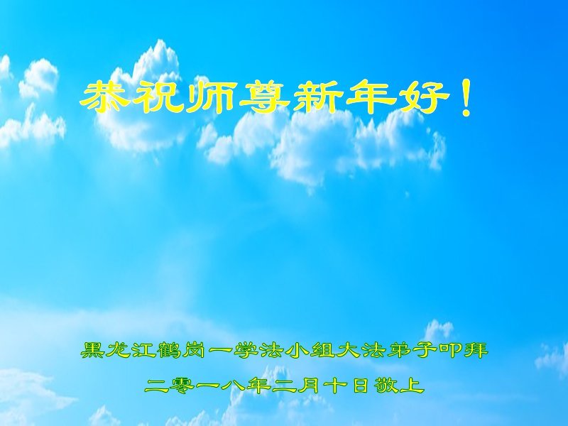 恭祝师尊新年快乐! 我们学法小组全体大法弟子决心听师尊的话,修好自己,多救人,兑现誓约,让师尊多一份欣慰,少一份操劳。 黑龙江省拜泉全体大法弟子恭祝慈悲伟大的师父过年快乐!
