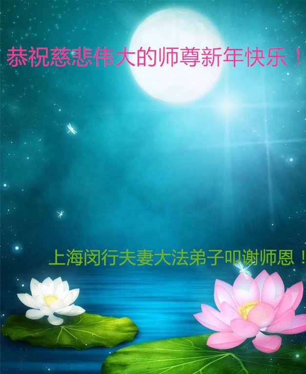 师尊新年好! 恭祝慈悲伟大的师尊新年快乐! 浦东南汇两学法组大法弟子 上海市浦东新区一中年大法弟子恭祝慈悲伟大的师尊新年好!