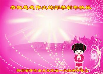 四川省达州市开江县卫生系统一大法弟子恭祝慈悲伟大的师尊新年快乐!