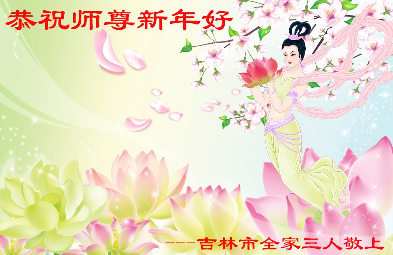 吉林省辽源市大法弟子全家恭祝慈悲伟大的师尊过年好!
