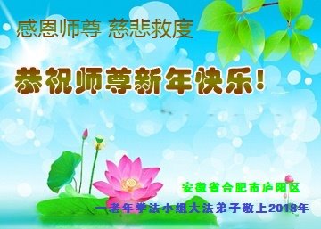 我们黄山市全体大法弟子给师尊拜年,感谢师尊的慈悲救度,我们一定跟随师尊坚修大法,精進。 安徽省合肥市庐阳区一老年学法小组大法弟子恭祝师尊新年快乐!