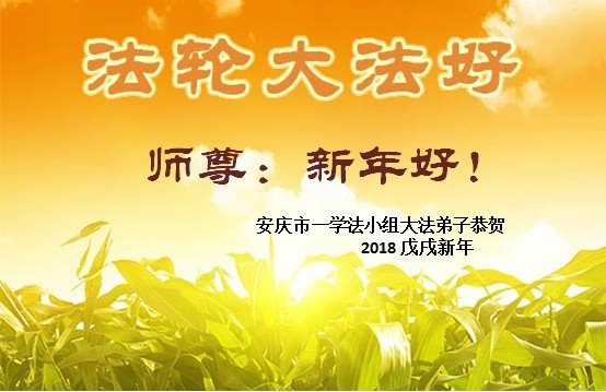 师尊洪恩延机缘,无量众生逃大劫。弟子们一定珍惜最后的时机,修好自己,救度更多众生。 安庆市一学法小组大法弟子敬贺 2018戊戌年新年 安徽省亳州市利辛县全体大法弟子恭祝师尊新年好!