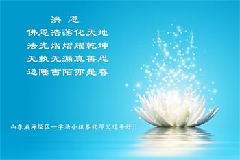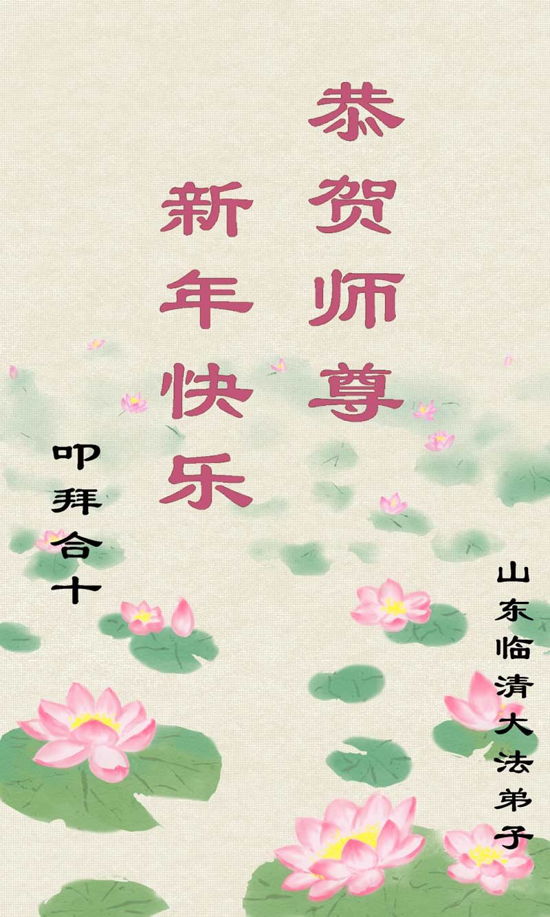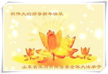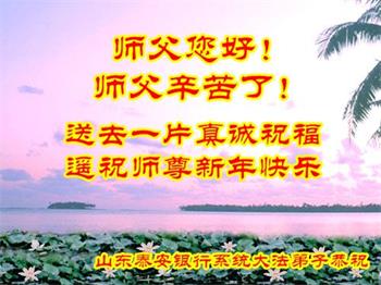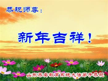 山东全体大法弟子向伟大的师尊拜年:祝师尊新年快乐!师父您辛苦了!弟子想念您!谢谢师尊对弟子的慈悲苦度!感恩师父!感恩大法!