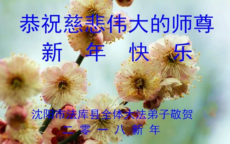 恭祝师尊新年快乐!师父好。 师父辛苦了。 愿师父多一些欣慰。少一些操劳。 辽宁省沈阳市法库县全体大法弟子恭祝慈悲伟大的师尊新年快乐!