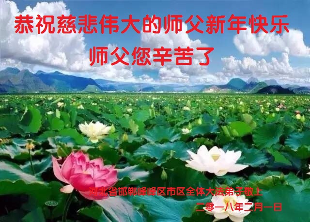 【明慧网二零一八年二月十三日】 河北省邯郸市峰峰区市区全体大法弟子恭祝慈悲伟大的师父新年快乐!