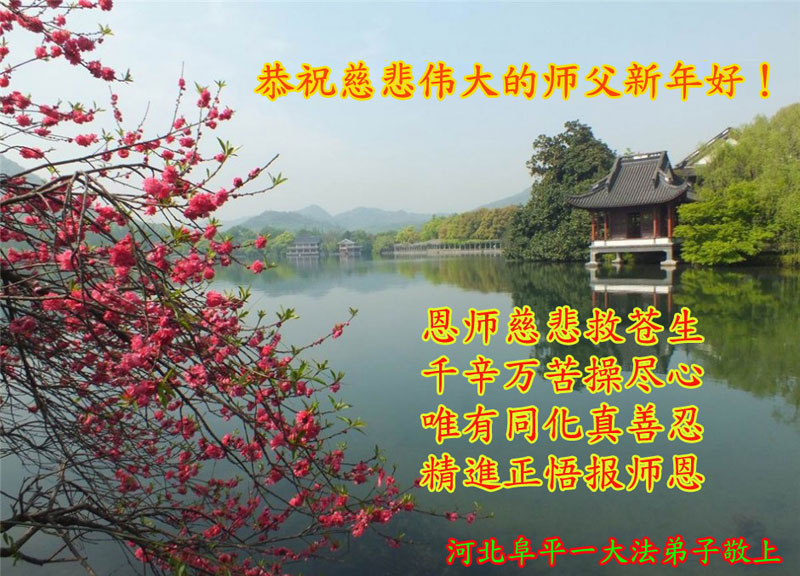 师父啊,您辛苦了!您把我从地狱中捞起洗净,今生成为师父的大法徒,是我无比的荣幸。时刻不忘自己的使命,放下一切人心,多救人,珍惜师尊给我的这把万能钥匙,向内找的法宝。 河北阜平一大法弟子恭祝慈悲伟大的师尊过年好!