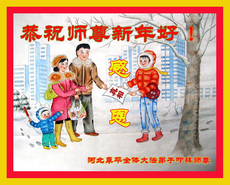 新的一年又到了,大法弟子在邪*党-严厉打压的恐怖日子里救度着众生,迎来了第十八个年头。在这六千个日日夜夜里,我们为什么这么坚定?是我们有慈悲伟大的师父,是师父唤醒了我们那沉睡的记忆,叫我们返本归真,回到我们真正的家园;是师父让我们记起那久远的誓约,救度众生,按真、善、忍的要求修好自己,回到人生的彼岸;是慈悲伟大的师父破开了重重迷雾,归正了我们偏离的航线,跌倒了爬起来再继续向前。师父啊您为弟子付出的太多太多了,用尽人间的千言万语难以表达,弟子只有修好自己,做好三件事,来回报师尊。 河北阜平一家七口恭祝师尊新年快乐!