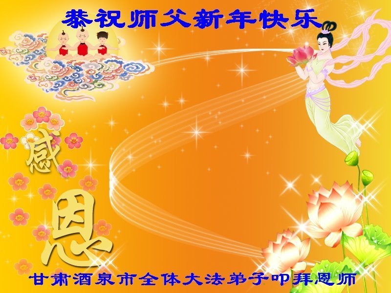 感恩感谢师尊的慈悲救度之恩! 甘肃酒泉市全体大法弟子恭祝慈悲伟大的师尊新年快乐!