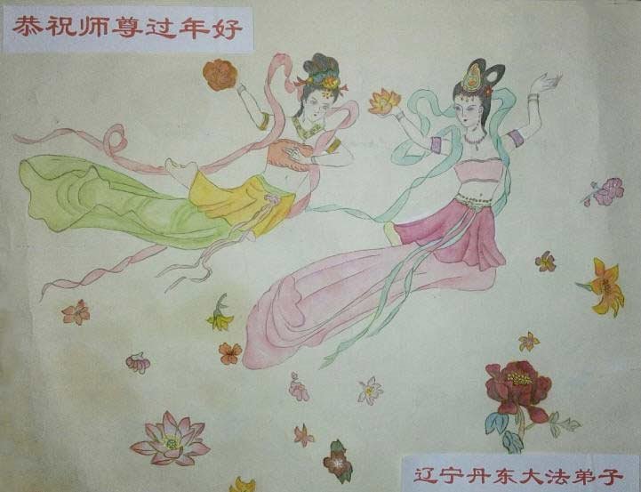 这是我地区大法弟子的绘画,值此新年到来之际,恭祝伟大师尊新年好!我们想念师父,叩谢师恩! 辽宁鞍山市太平一大法弟子恭祝师父过年好!