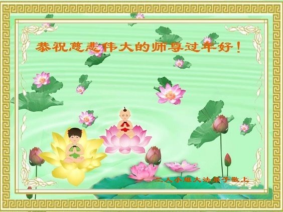 师尊: 人间的语言无法表达我对师尊的尊敬与感激,佛恩浩荡,弟子全家五口叩拜师尊,恭祝师尊新年快乐!新尊您辛苦了! 长春大法弟子敬上 吉林省长春市大法弟子恭祝师尊过年好!