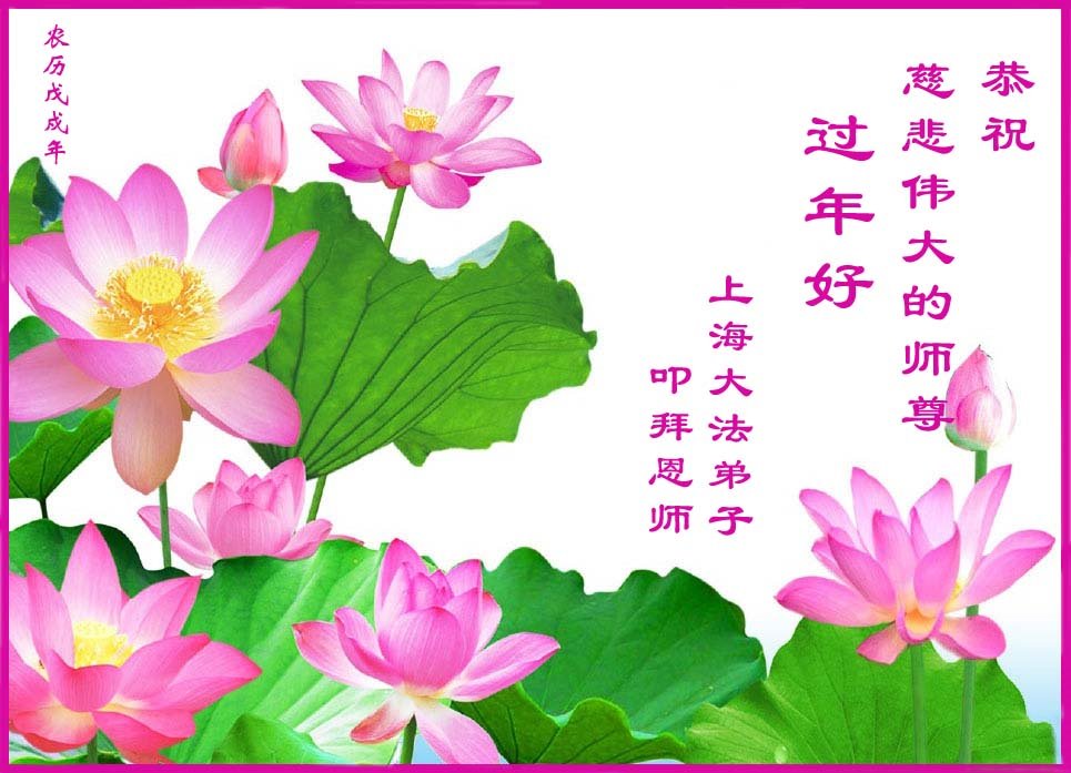 千言万语难以表达弟子对师尊的感恩,弟子想念师尊。师尊新年快乐! 弟子给师尊拜年,合十! 广州市上海市黄浦区一学法小组全体大法弟子恭祝师尊新年快乐!