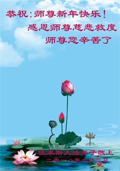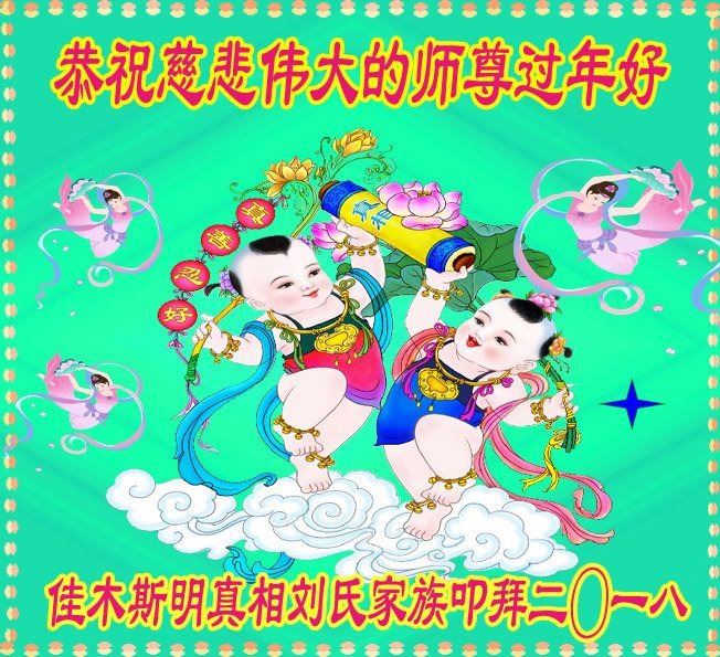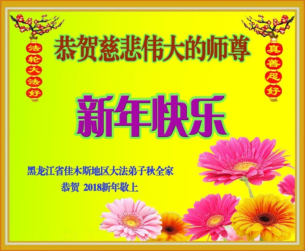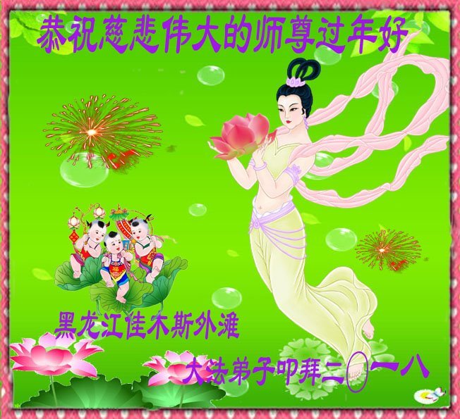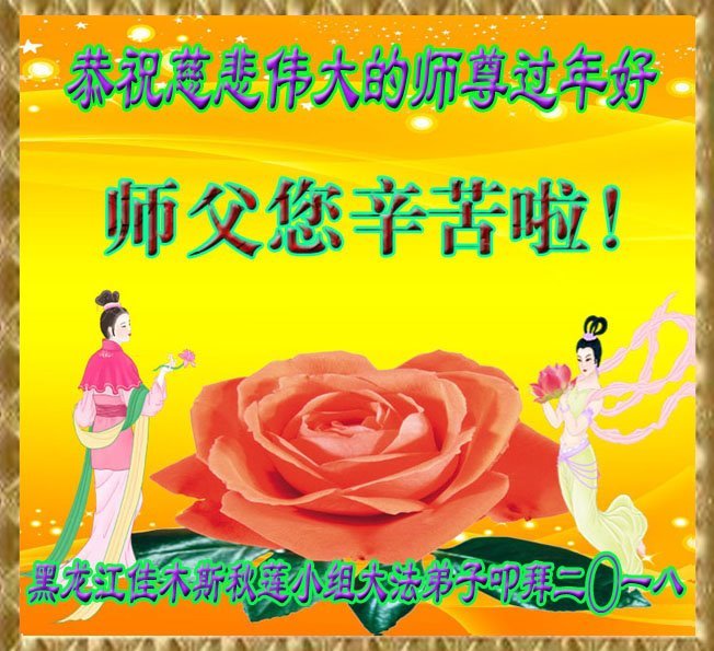 师尊您好: 恭祝师尊戊戌年新年快乐! 黑龙江省佳木斯市母女两位大法弟子敬上 黑龙江佳木斯一大法弟子及全家恭祝慈悲伟大的师尊新年快乐!
